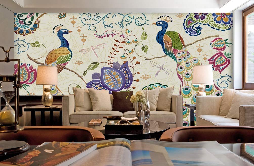 Amazon Com Murwall Peacock Wallpaper Tulip Floral Wall Mural