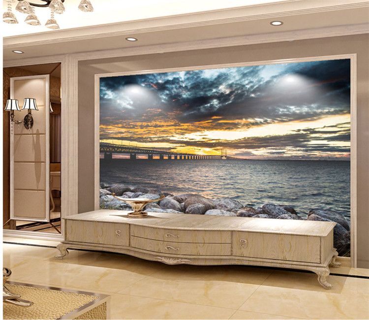 3d Setting Sun Photo Wallpaper Sea Art Wall Mural Living Room Tv