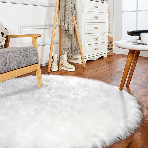 Ruldgee Fluffy Round Rug For Living Room Faux Fur Carpet Kids