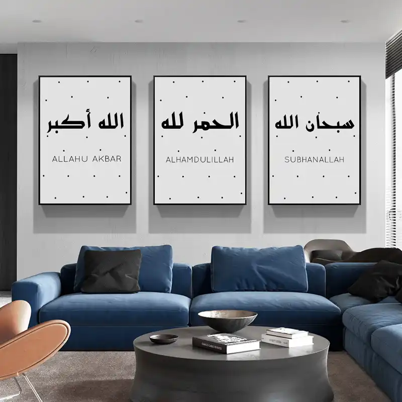 Modern Subhanallah Allahu Islamic Wall Art Canvas Paintings Black