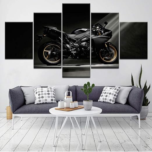 Amazon Com Posters Prints Modern White Motorcycle Racing Canvas