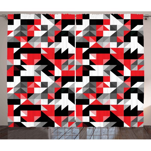 Red And Black Curtains 2 Panels Set Abstract Geometric Half