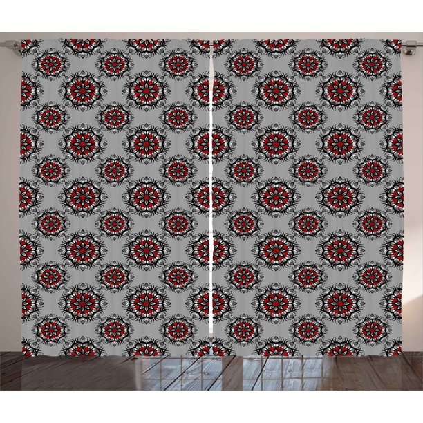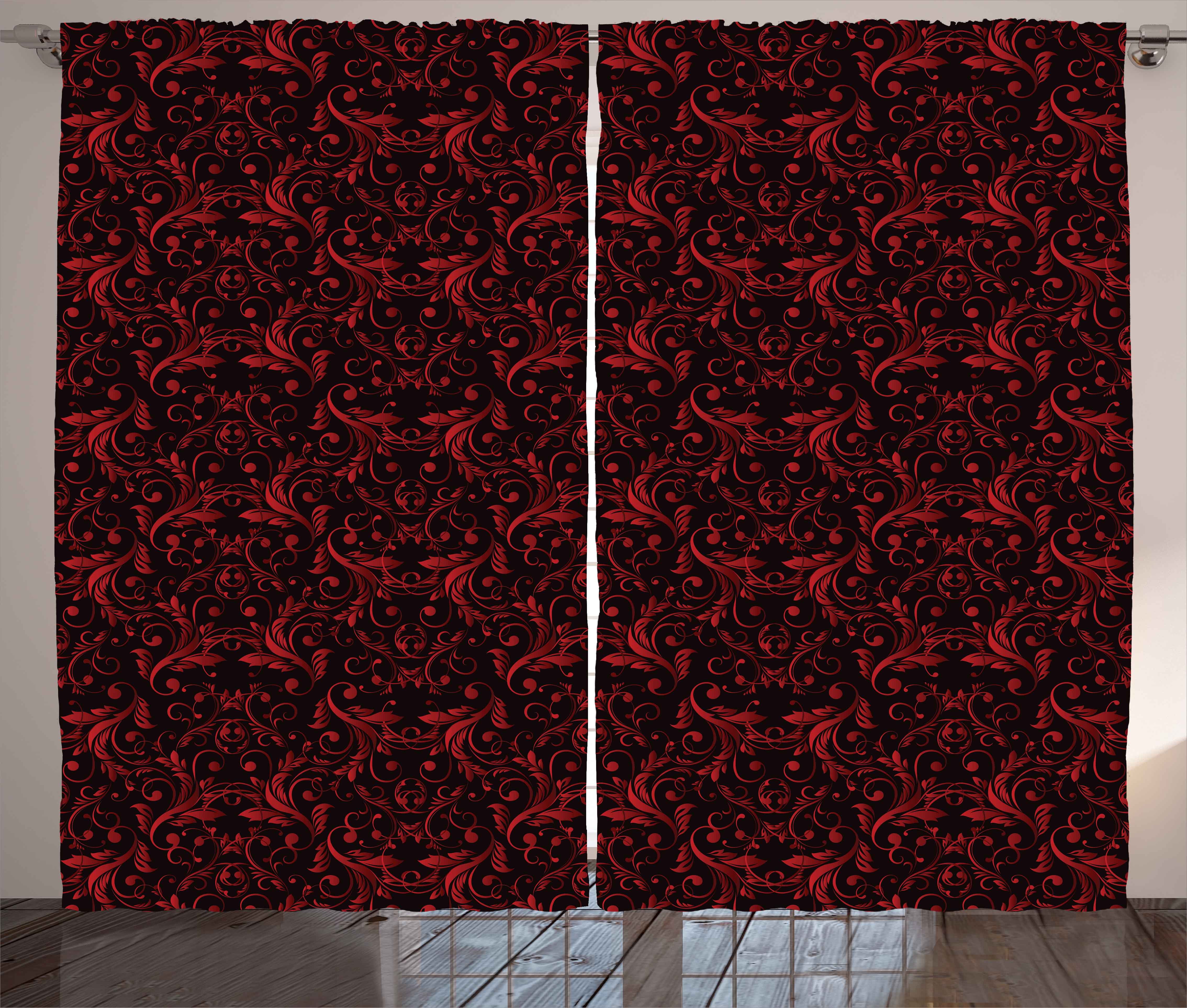 Red And Black Curtains 2 Panels Set Victorian Floral Design With