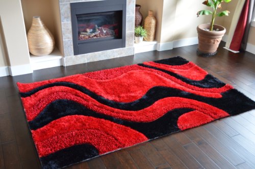 Amazon Com Red Black Silver Colors Two Tone 5 X7 Feet Shag