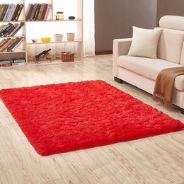 Rugsotic Carpets Hand Tufted Polyester Solid Shag Area Rug Red
