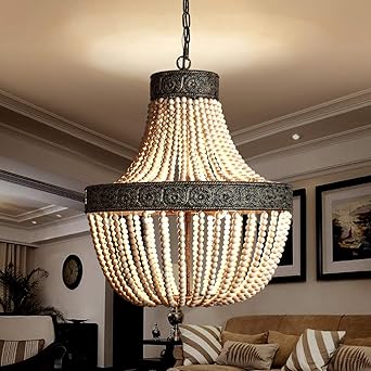 Tzoe Wood Beaded Chandelier Boho Lamp Light Fixture Farmhouse