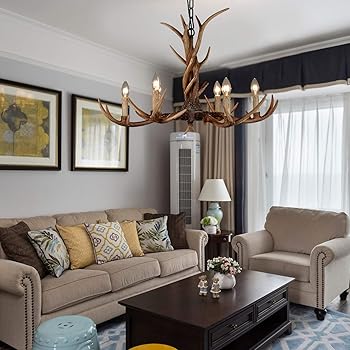 Boou Deer Antler Chandeliers Lighting 6 Light Rustic Deer Horn