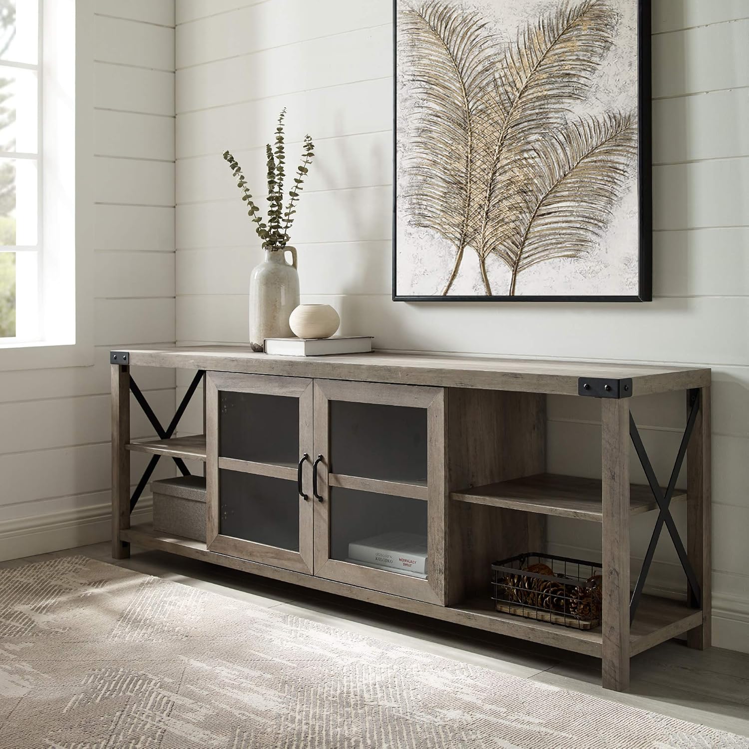 Tv Stand Unit Cabinet With Shelves Cabinets Rustic Living Room