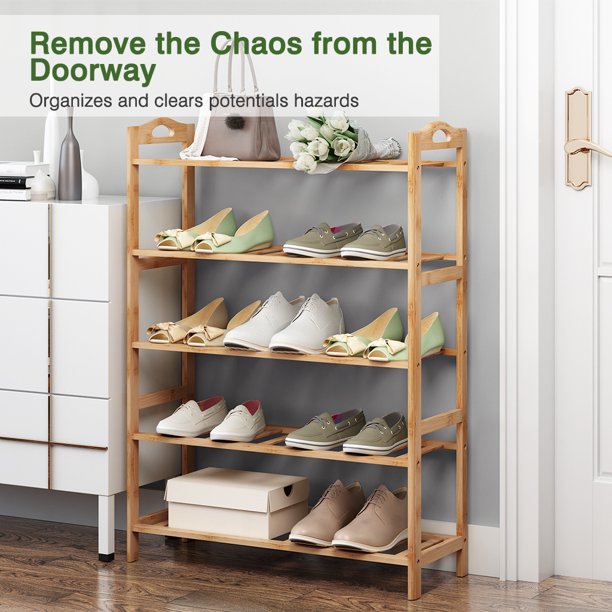 Langria 5 Tier Bamboo Shoe Rack Storage Shelf Holds Up To 15 Pairs Suitable For Living Room Bedroom Entryway Walmart Com Walmart Com