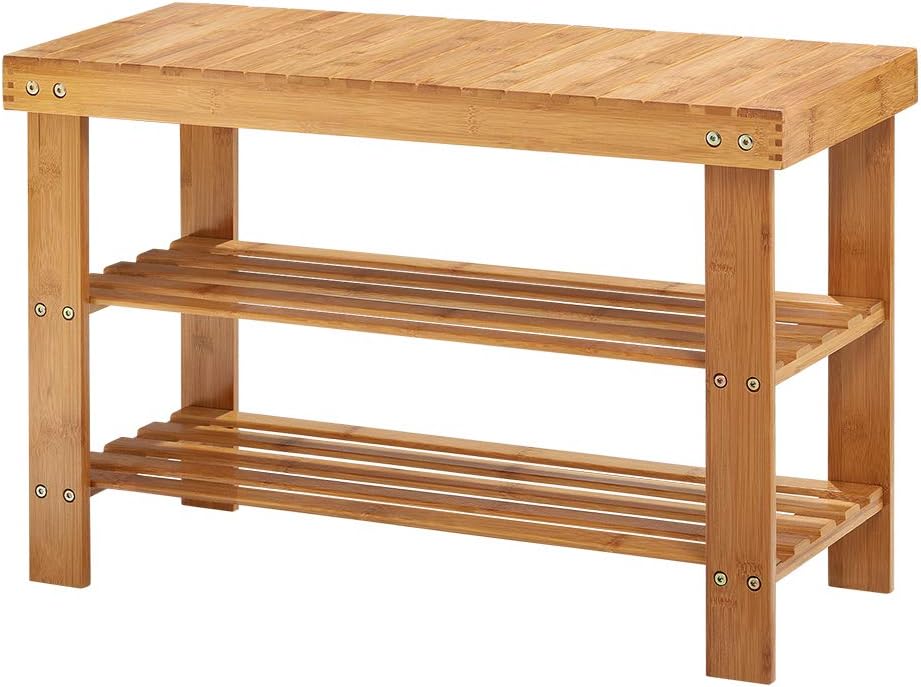 Amazon Com Liantral Shoe Rack Bench 2 Tiers Bamboo Shoe Organizer Entryway Seat Storage Shelf Bathroom Living Room Organizer Shelf Natural Bamboo Color Kitchen Dining
