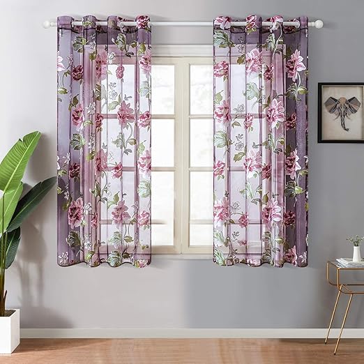 Amazon Com Top Finel Floral Sheer Curtains 45 Inch Length For