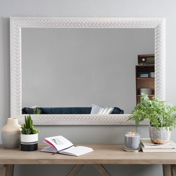 Brushed White With Silver Leaves Framed Mirror Kirklands
