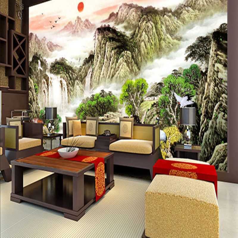 3d Living Room Tv Background Wallpaper Mural Mountain And River
