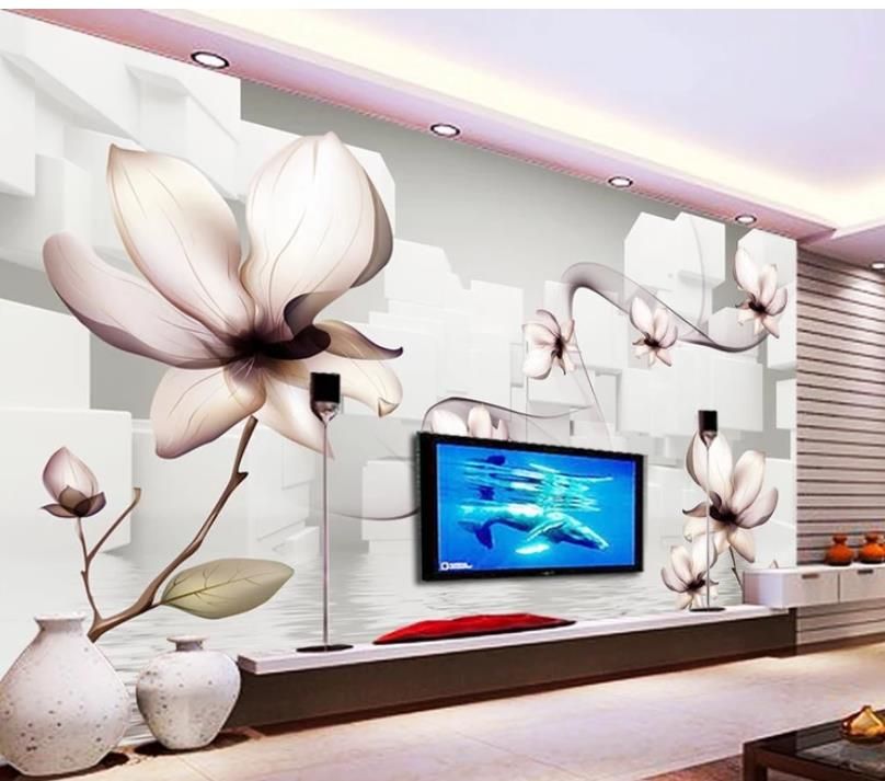 3d Murals Wallpaper For Living Room Lily Flower Reflection
