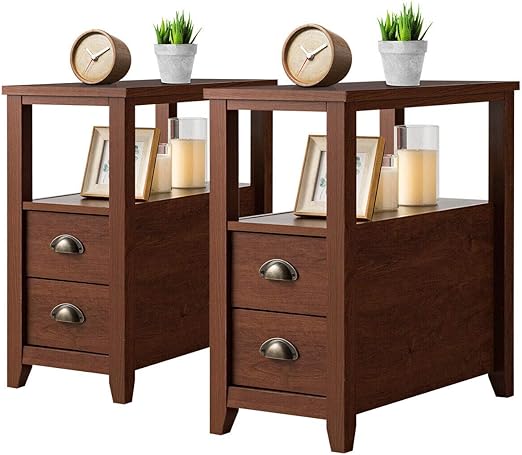 Amazon Com Giantex End Table W 2 Drawers And Shelf Space Saving