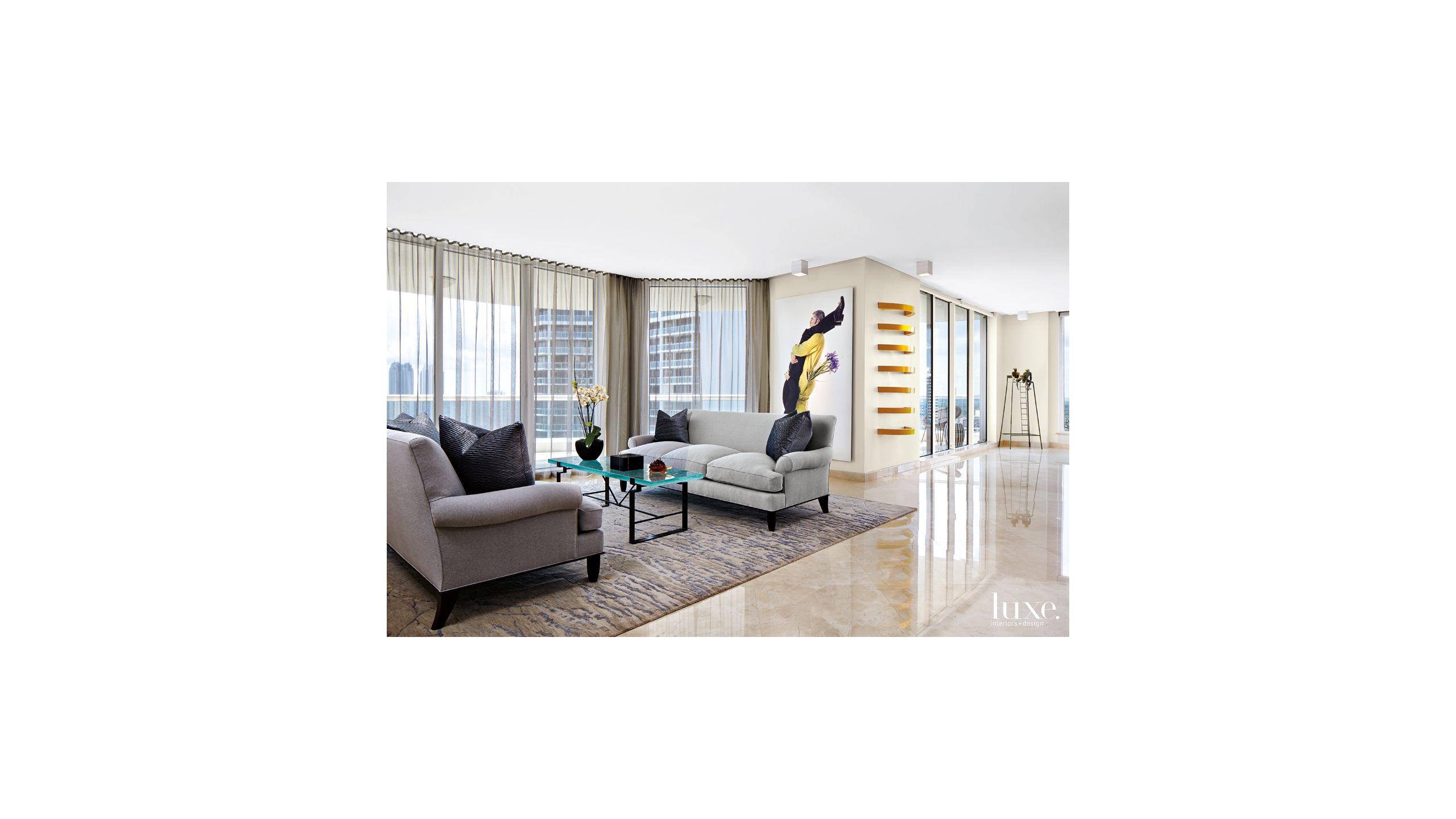 Contemporary Neutral Living Room With Spotlight Lighting Luxe