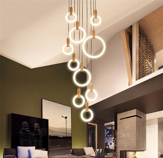 Led Ceiling Lamp Living Room Lighting Spots Adjustable Chrome Wood