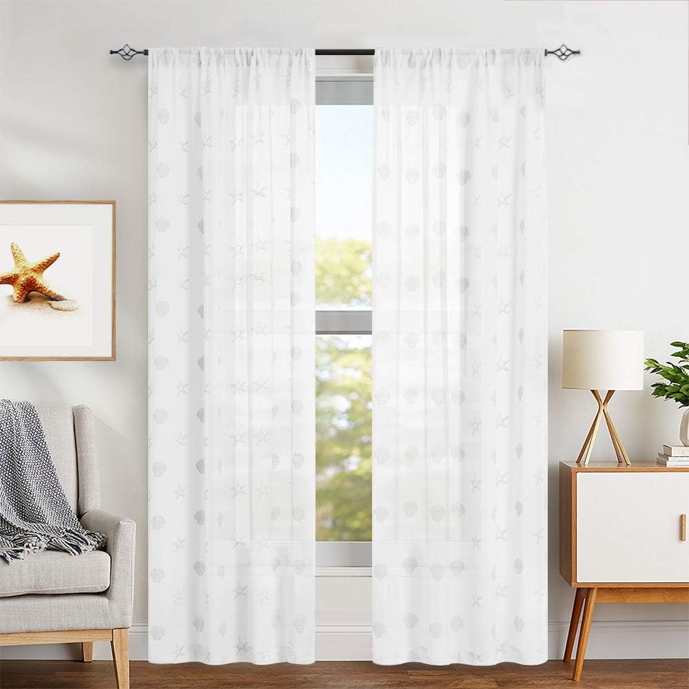 Jinchan Sheer Curtains Blue 63 Inch Summer Seashells Pattern