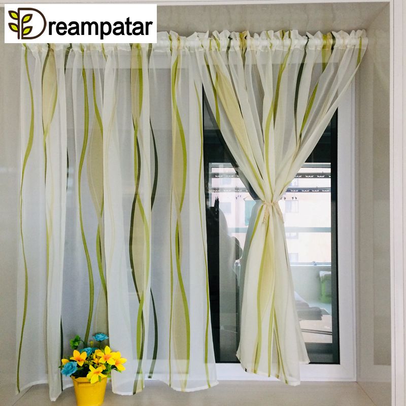 2020 Green Modern Short Striped Gauze Curtains For Kitchen Door