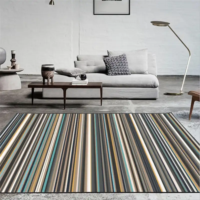 Carpets For Living Room Modern Pinstripe Lake Blue Tan Short