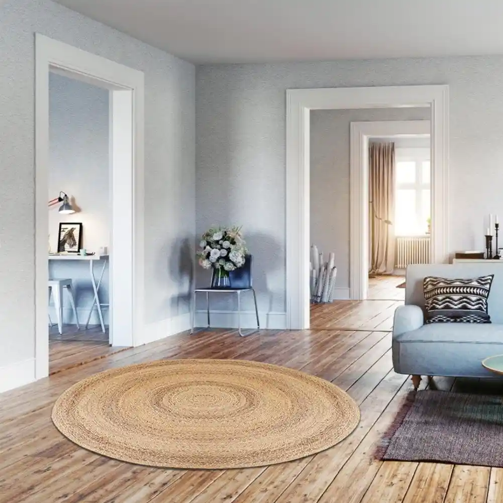 Diameter 100cm Weed Hand Woven Carpet Tan Round Jute Rug Rural
