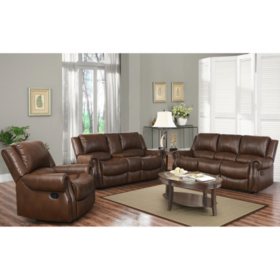 Abbyson Giorgio 3 Pc Top Grain Leather Reclining Sofa Set Bjs