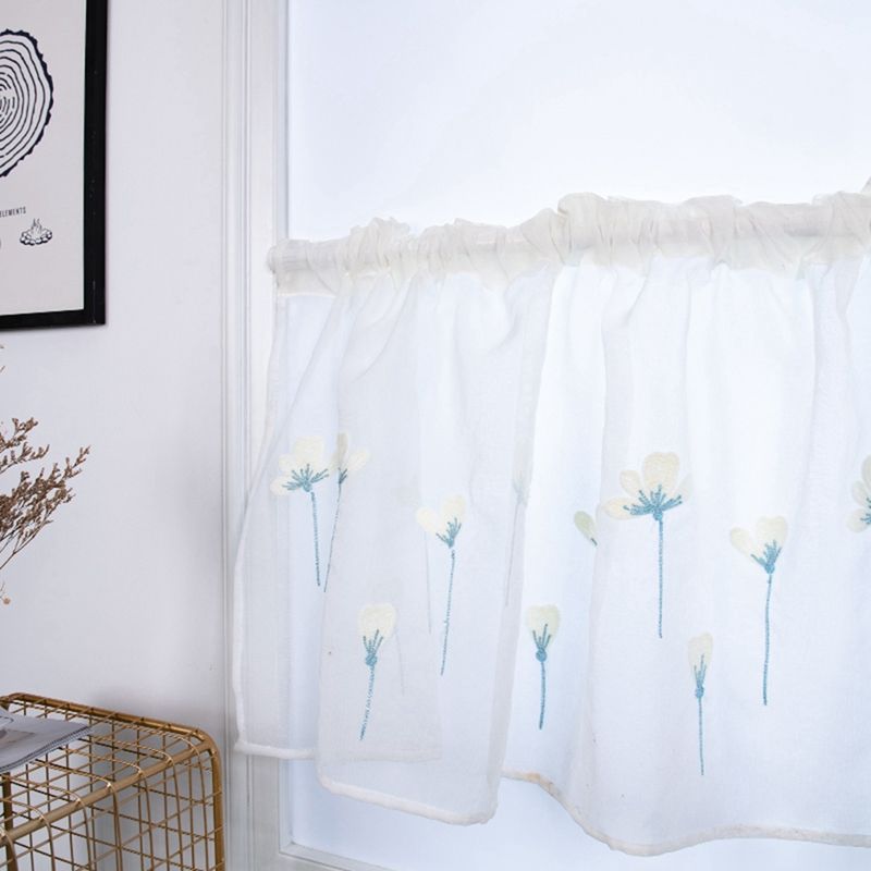 Zebrasmile Embroidered Window Tier Curtain Tier Semi Sheer Curtain