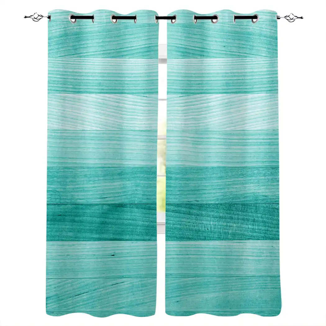 Turquoise Wooden Board Window Curtains Livingroom Kitchen Curtains