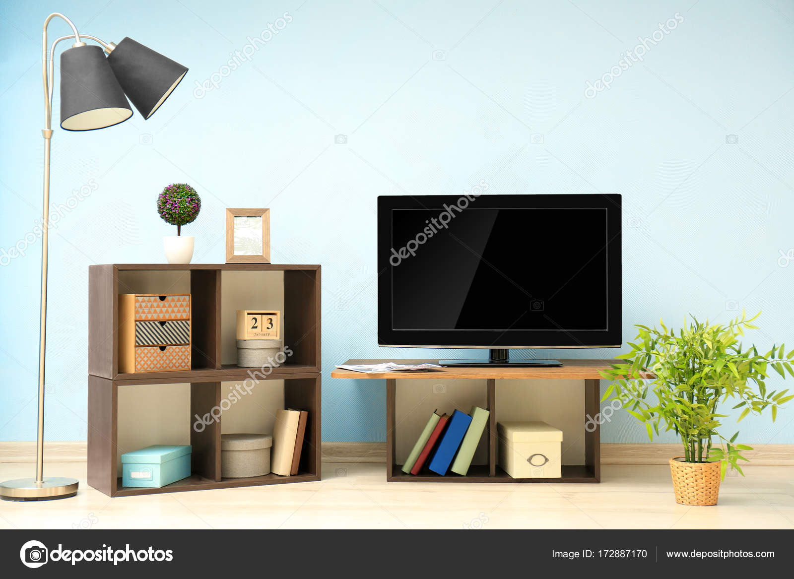 Modern Tv Set On In Living Room Stock Photo C Belchonock 172887170