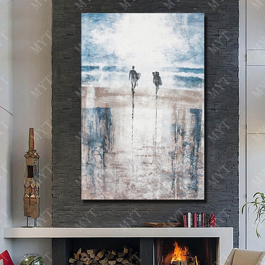 2020 Hand Painted By Artist Man And Women Beach Oil Painting