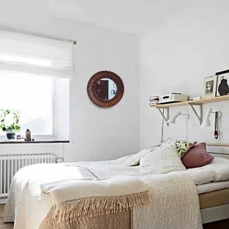 Neu Type Modern Rustic Wood Round Hanging Wall Mirror Living Room