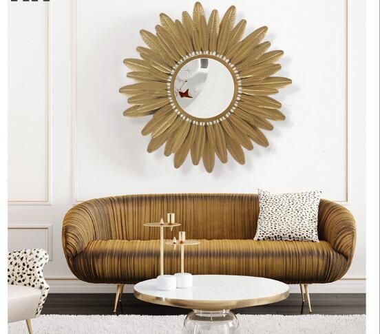 Chinese Iron Mirror Creative Golden Sunflower Wall Decoration