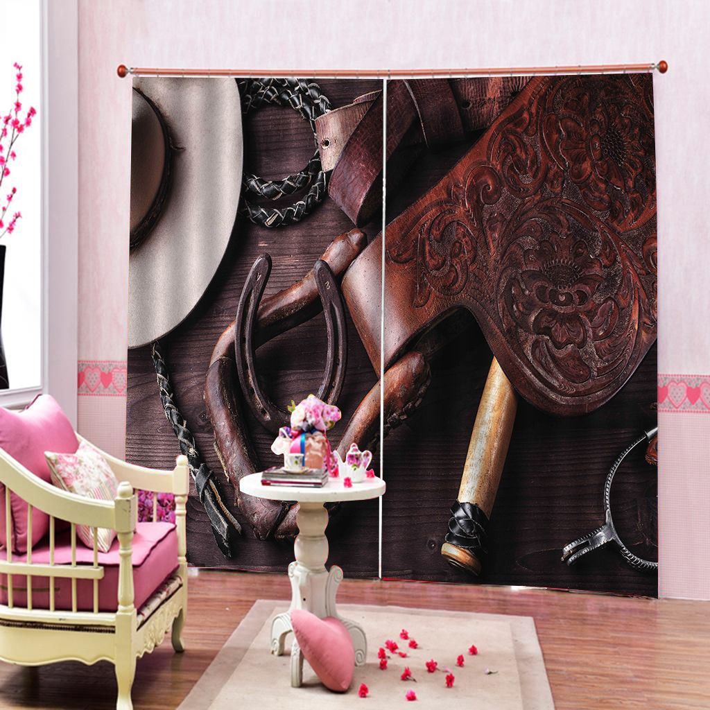 2020 Custom 3d Curtain Western Decor Old Leather Boots And Spurs Rustic Living Room Bedroom Blackout Window Curtains
