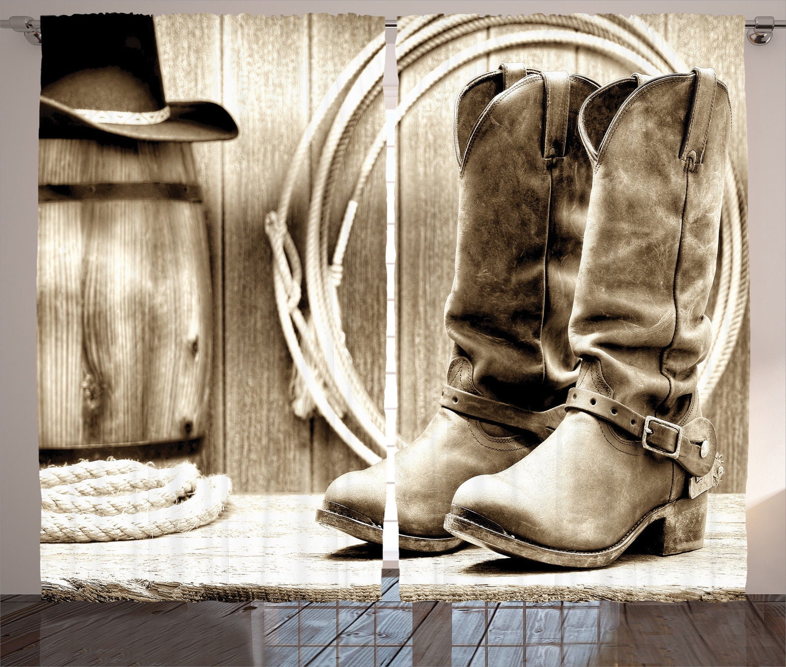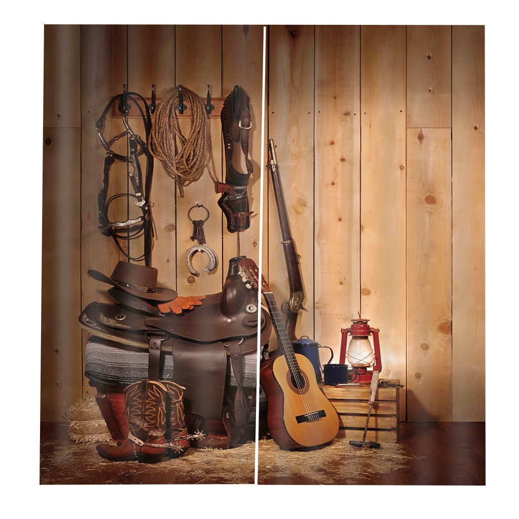 2020 Custom 3d Curtain Western Decor Old Leather Boots And Spurs
