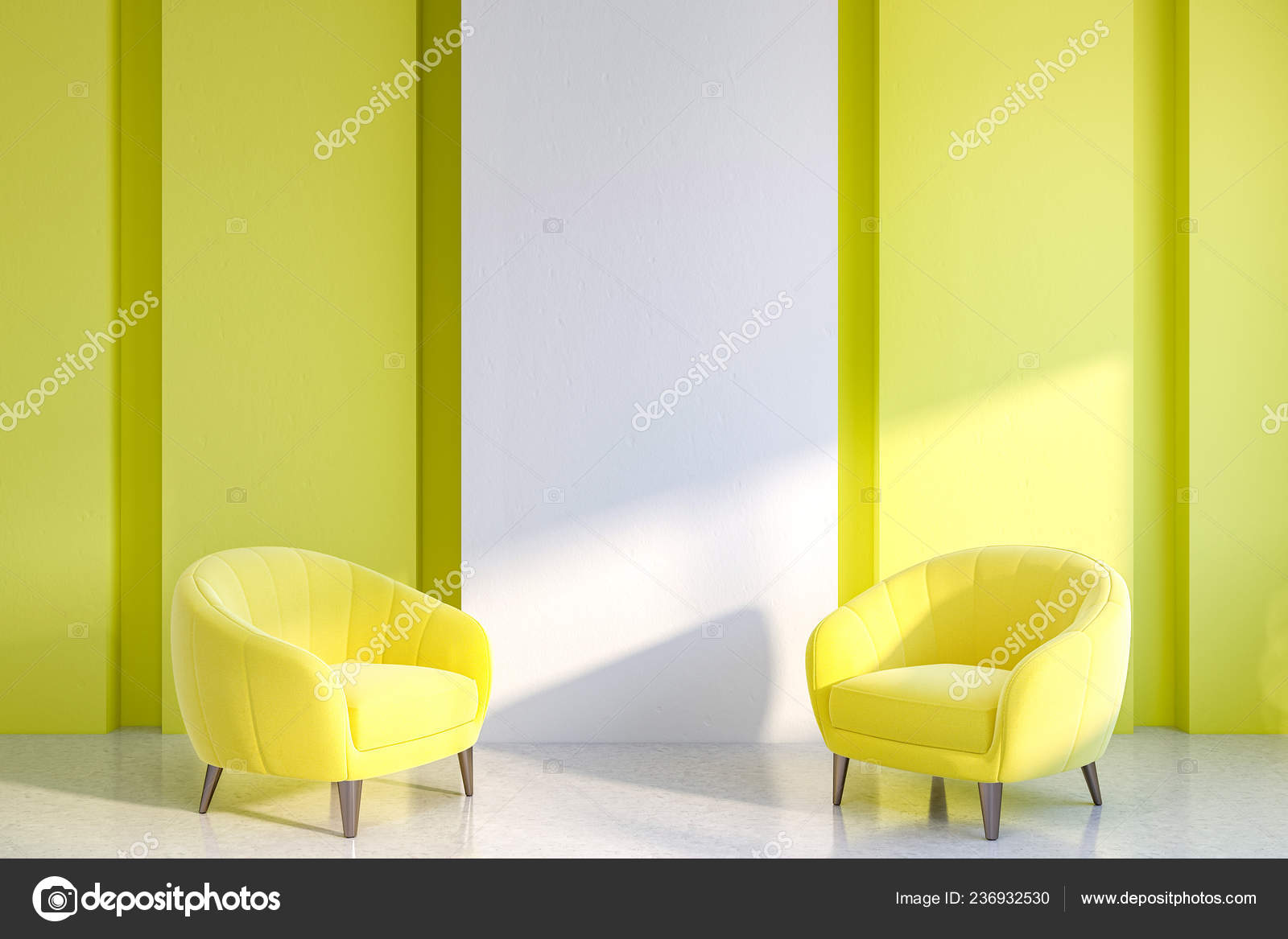 Corner Of Modern Living Room With Gray Walls White Floor Yellow