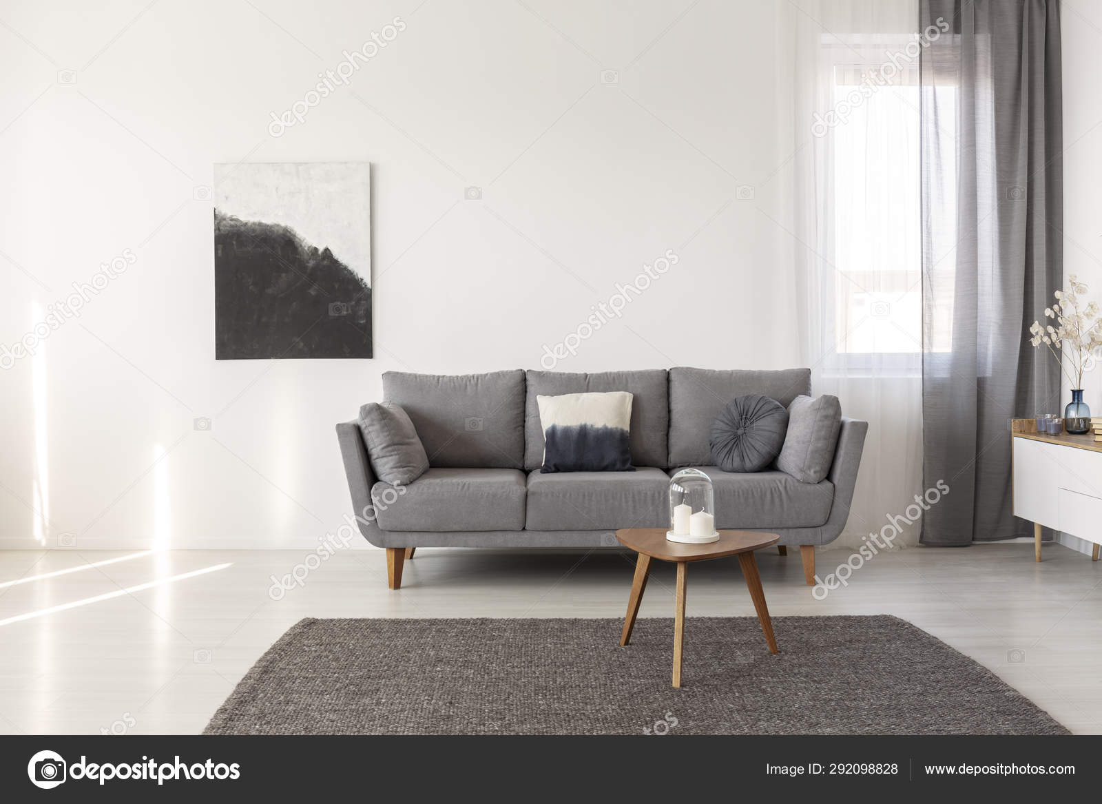 Black And White Abstract Painting On Empty Wall Of Cozy Living