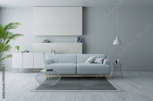 Minimalist Living Room With White Wall And Gray Sofa 3d Rendering