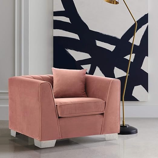 Modern Tufted Arm Chair Grey Upholstered Velvet Accent Chair Wide