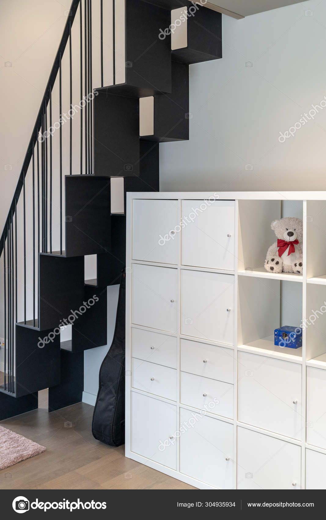 Retro Wooden Cabinet With Black Vases In The Corner Of Classy