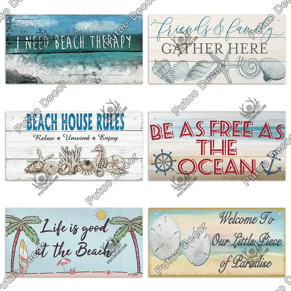 Putuo Decor Beach Summer Signs Decorative Plaque Wood Wall Plaque
