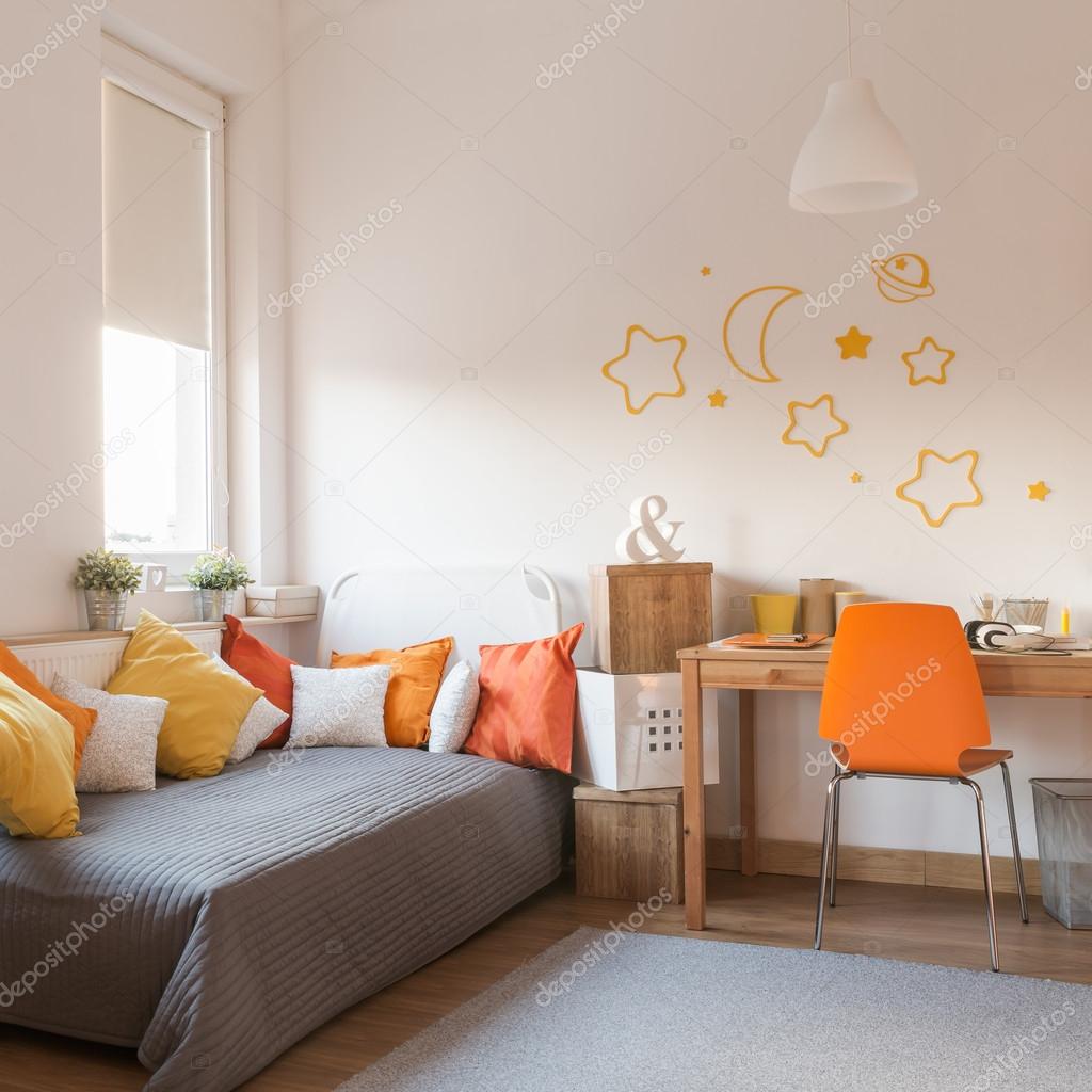 Shot Of A Cozy Bright Studio With Yellow Accessories Stock Photo