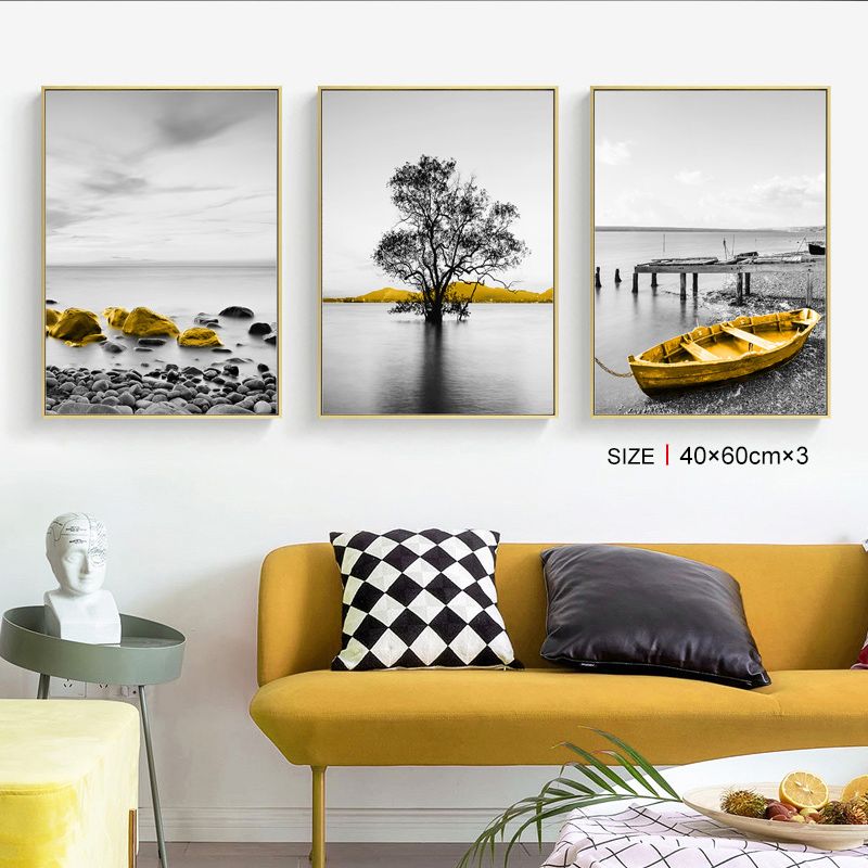 2020 Fishing Boat Seascape Yellow Retro Art Seaside Scenery Poster