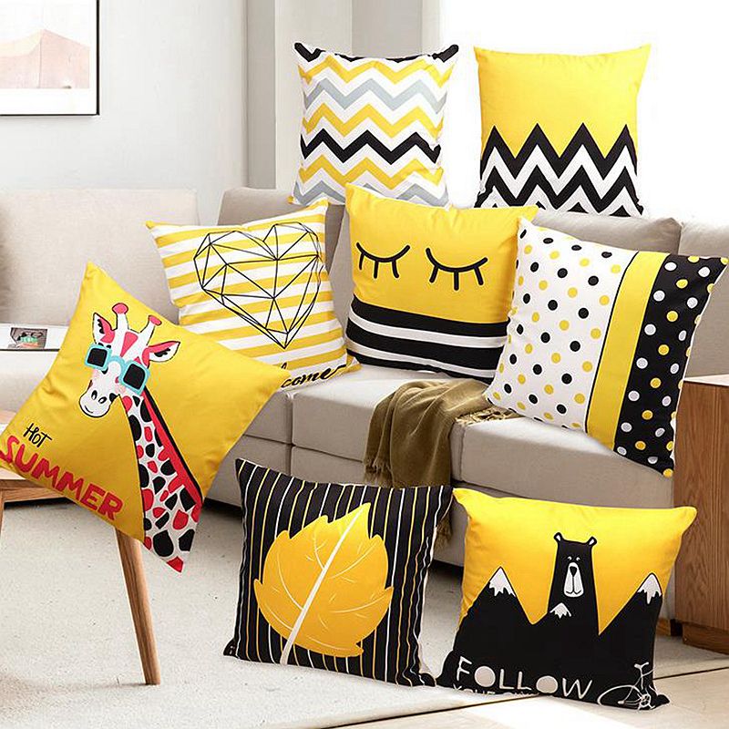 Cushion Cover Yellow Geometric Decorative Pillow Case Sofa Throw