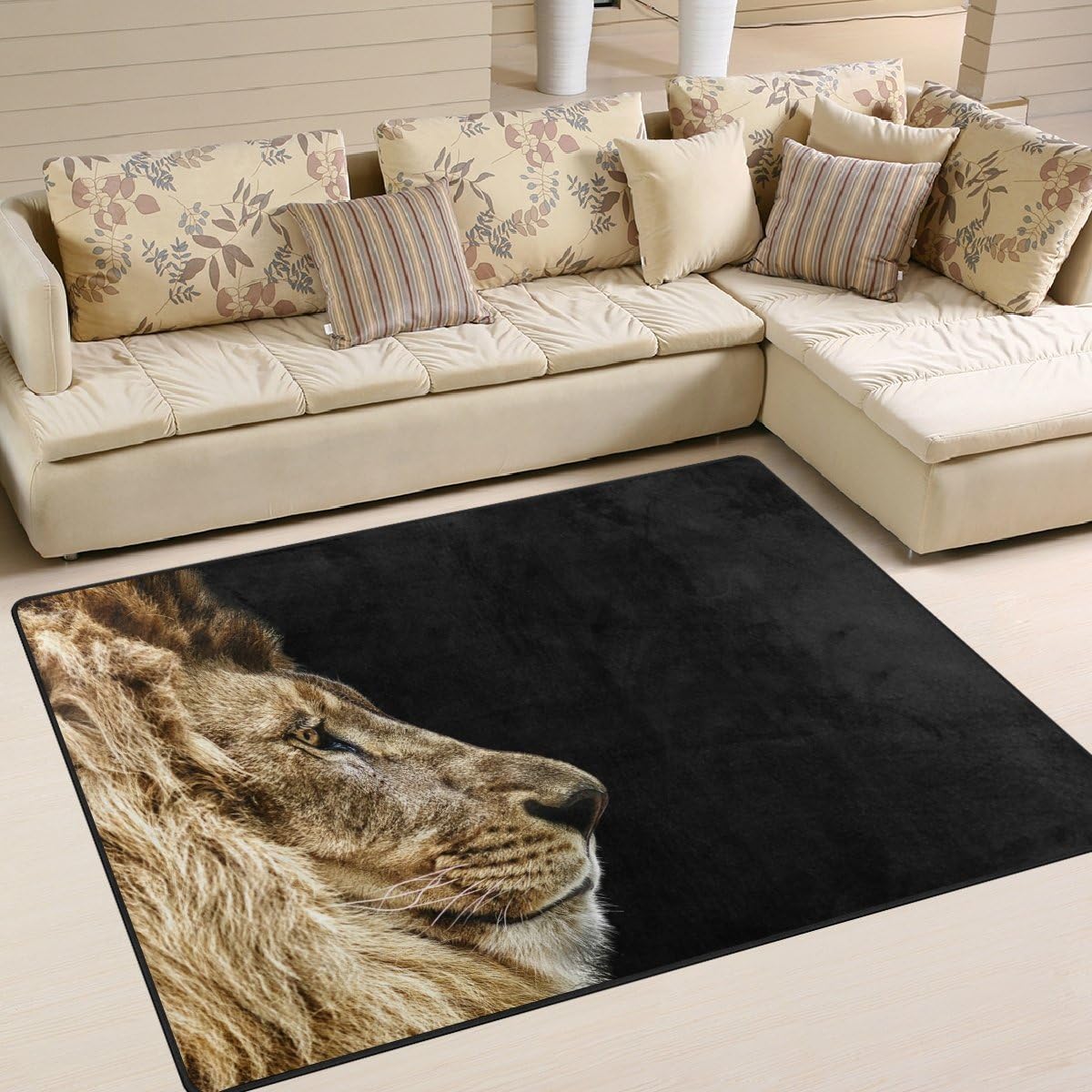 Amazon Com Alaza Yellow Lion Head Black Area Rug Rugs For Living